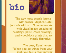 home ... oils ... pastels ... woodblocks ... shows / news ... bio /contact copyright 8 2006 stephen j. gates. all rights reserved website design Jana Graphics